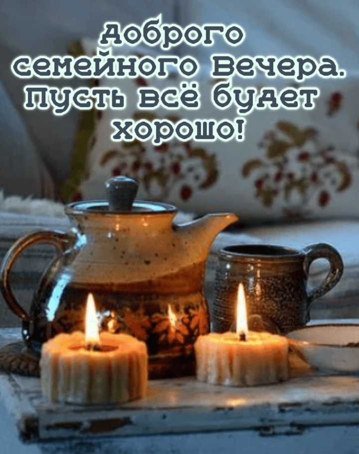 Текст на картинке: Доброго семейного Вечера. Пусть всё будет хорошо!.
