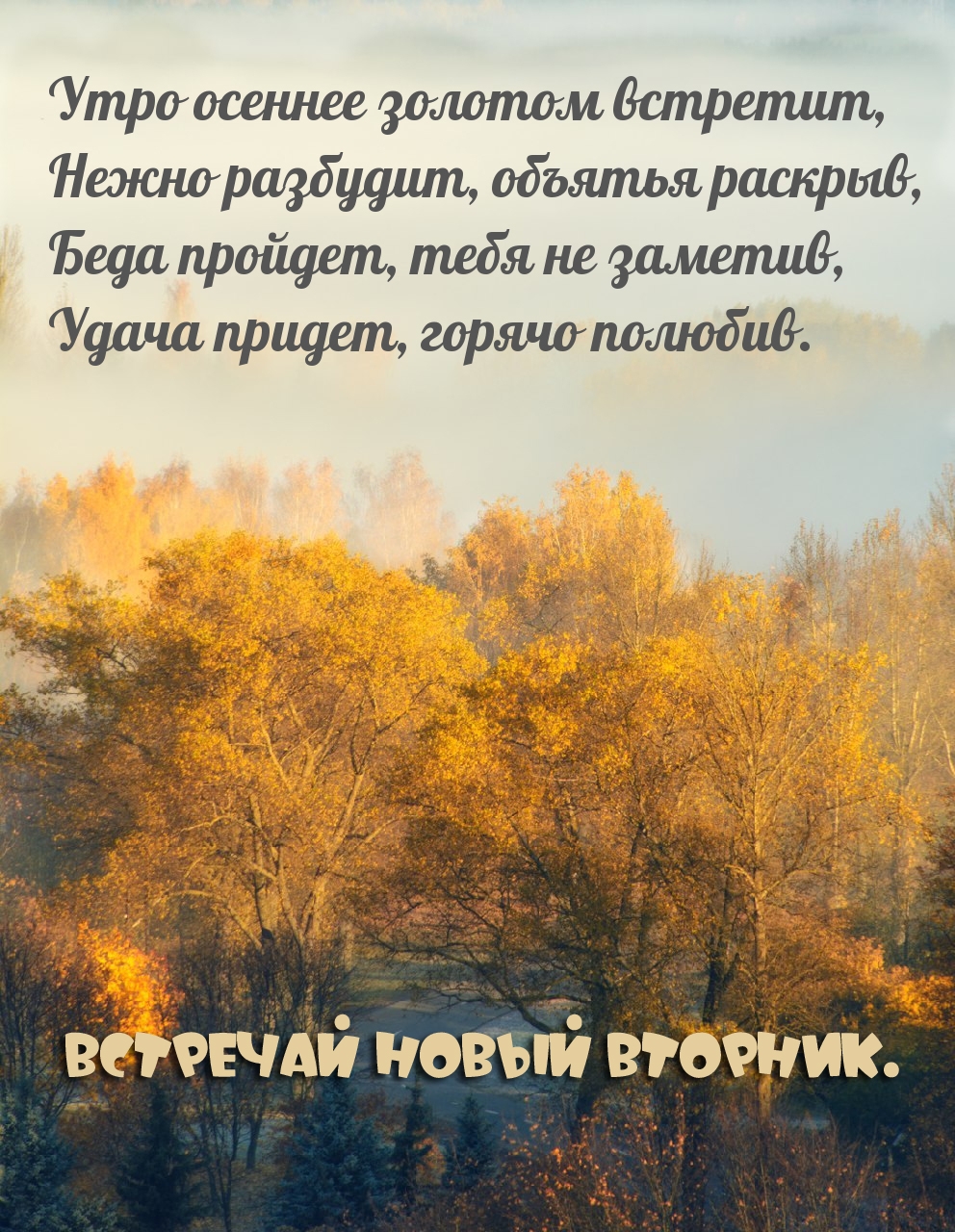 Текст на картинке: Встречай новый вторник..
